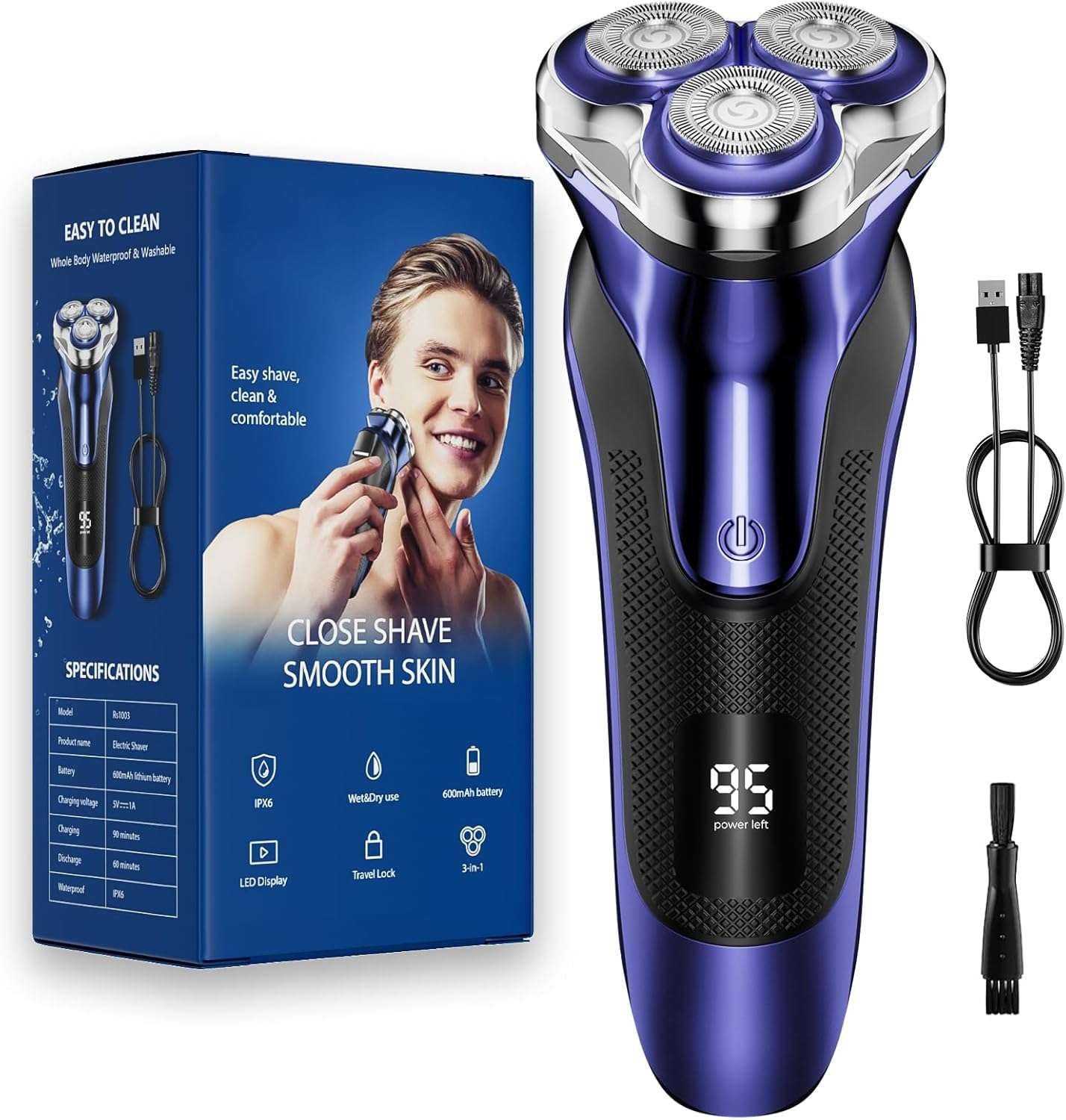 4D blades contour closely.IPX6 enables wet shaving.